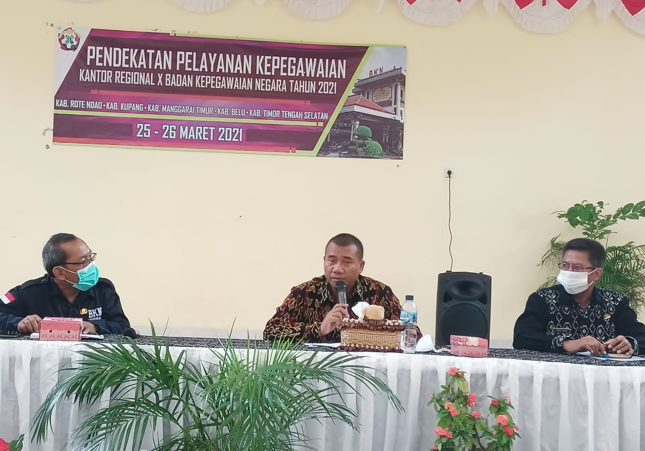 Badan Kepegawaian Negara Kantor Regional X Denpasar menyosialisasikan Peningkatan Pelayanan Kepegawaian (P2K) kepada Pegawai Negeri Sipil (PNS) di Kabupaten Rote Ndao,