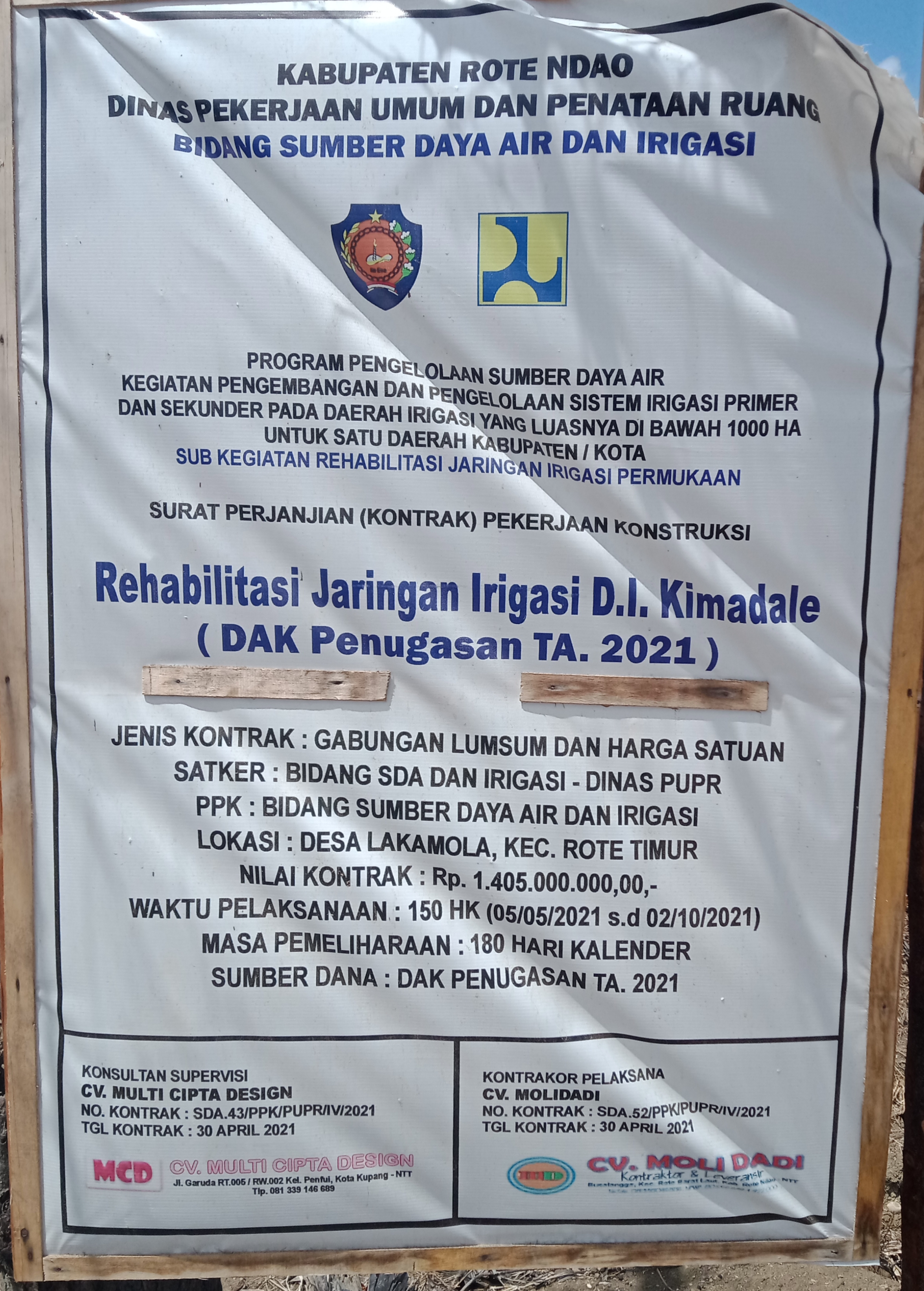CV. Molidadi sebagai Kontraktor Pelaksana Pekerjaan Proyek Rehabilitasi Jaringan Irigasi D. I Kimadale Desa Pengodua Kecamatan Rote Timur diduga kuat mengadakan Material tidak sesuai Spesifikasi teknis, berupa Pengadaan Pasir Lokal yang bercampur abu, Pasir Lokal yang diduga diambil dari kecamatan Rote Tengah tersebut rencananya digunakan untuk pekerjaan Rehabilitasi Jaringan Irigasi di Kimadale
