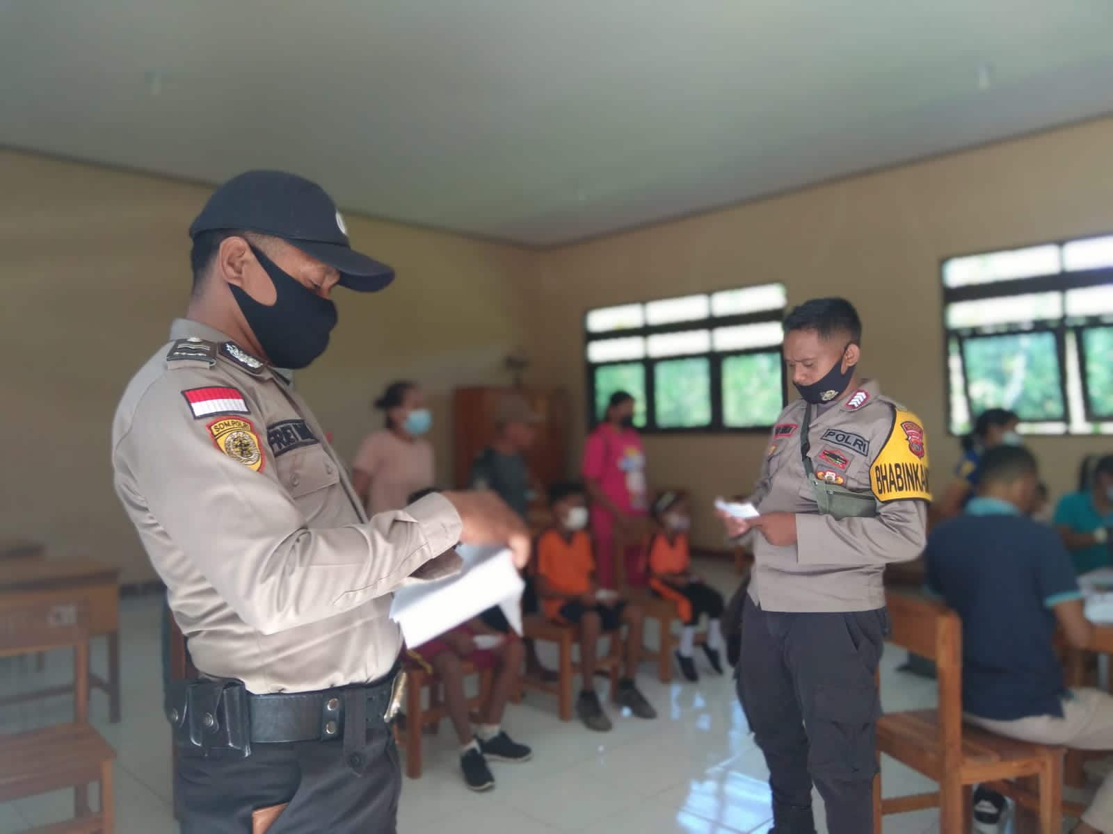 Tiga orang Anggota Polsek Rote Barat Laut melakukan Pengawalan/pengamanan Kegiatan Vaksinasi Covid-19 Untuk Anak Sekolah Dasar dan Lanjut Usia (Lansia) Di SDN Feamam Desa Temas Kecamatan Rote Barat Laut pada hari ini Jumat (13/05/2022)