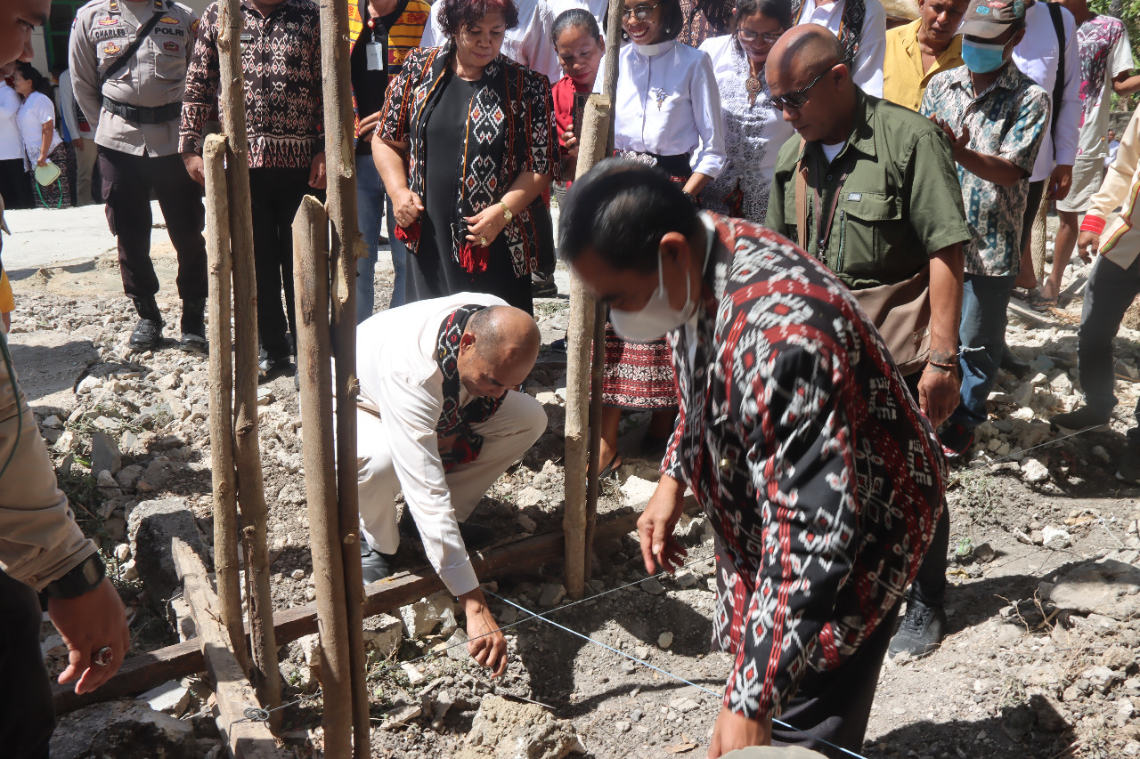 Acara diakhiri dengan peletakan batu pertama Pastori oleh Gubernur NTT, Viktor Bungtilu Laiskodat dan Bupati Rote Ndao, Paulina Haning Bulu.