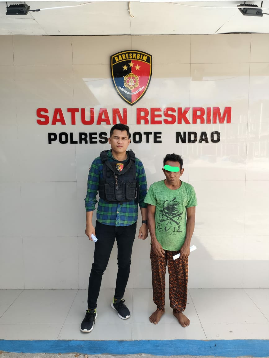 Identitas tersangka seorang laki-laki berinisial “F H:, (33 tahun) berdomisili di, RT 09 RW 05 Desa Loleoen Kecamatan Lobalain Kabupaten Rote Ndao dan terhadap tersangka telah dilakukan penangkapan pada tanggal 20 Agustus 2023, dan telah dilakukan penahanan 20 hari ke depan mulai tanggal 21 Agustus 2023 Ruang Tahanan Polres Rote Ndao guna kepentikan penyidikan