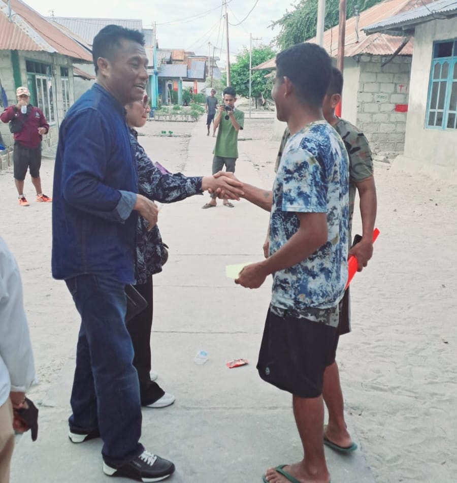 Saat tiba di Desa Landu (Pulau Landu) di Kec Rote Barat Daya. Pulau kecil yang langsung berbatasan dengan Negara Australia. Walau di hantam gelombang dan angin bersama Tim tiba dengan selamat Calon Bupati Paulus Henuk bersama Istri Yane Henuk Pelokila disambut warga setempat dengan bahagia, (Tim)