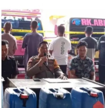 Polres Rote Ndao gelar perkara BBM Ilegal yang diselundupkan melalui Pelabuhan Bolok Kota Kupang masuk ke Pantai Baru Kabupaten Rote Ndao. Provinsi NTT.