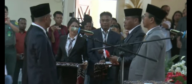 Penunjukan Alfred Saudila sebagai Ketua sementara dan Feky Boelan sebagai Wakil Ketua Sementara, usai Ketua Pengadilan Negeri Rote Ndao Fransiska D P Paulo Nino, SH,.MH mengambil sumpah jabatan 25 Anggota DPRD Rote Ndao 2024-2029 pada hasil pemilu 2024