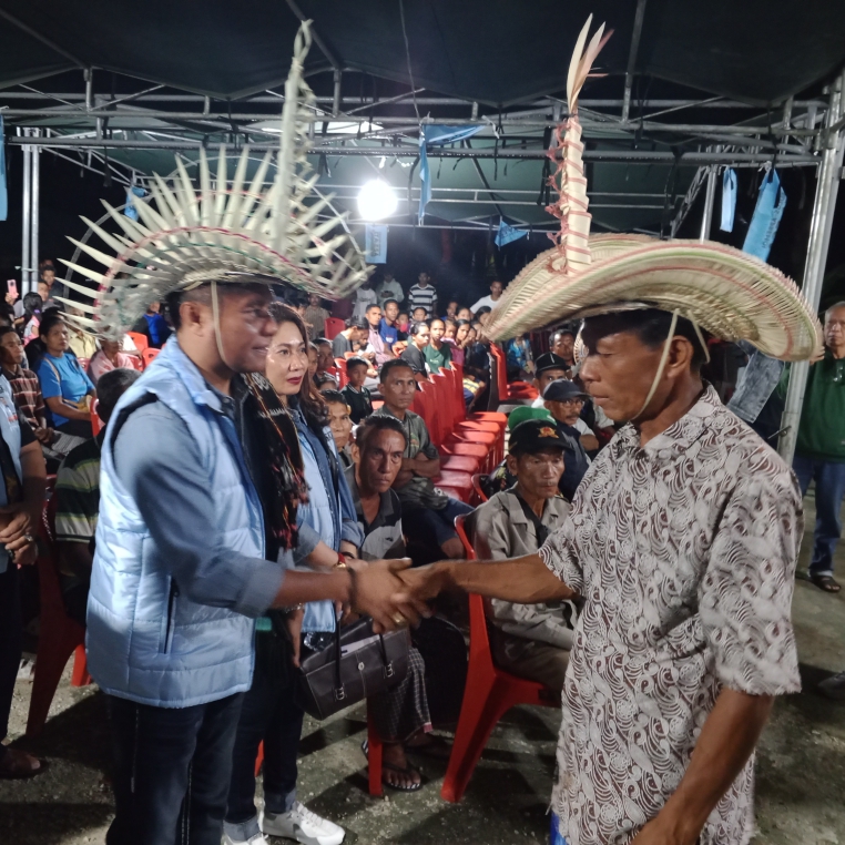 Saat tiba ditempat pertemuan, Calon Bupati Paulus Henuk dan istrinya Yane Pelokila disambut secara adat