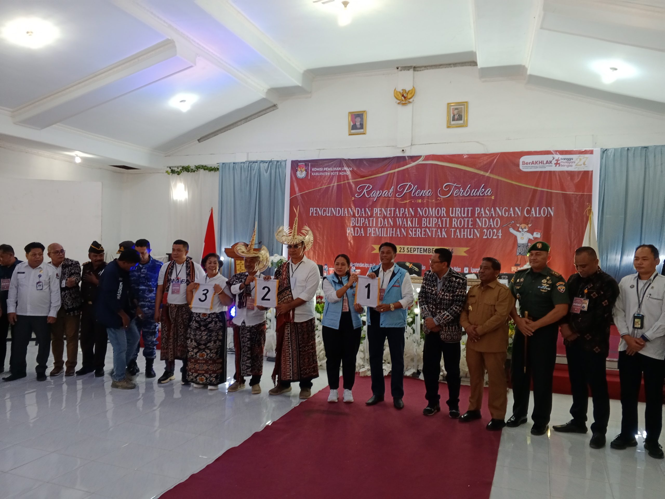 Pengundian nomor untuk tiga pasangan Calon Kepala Daerah itu di pandu ketua KPU Rote Ndao Agabus dan didampingi anggota KPU