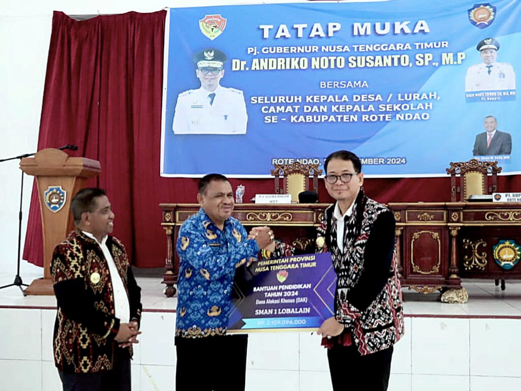 Pj. Gubernur NTT, Dr. Andriko Noto Susanto, S.P, M.P melaksanakan kunjungan kerja (Kunker) di kabupaten Rote Ndao sekaligus menggelar tatap muka bersama yang dihadiri oleh Penjabat bupati Rote Ndao Odermaks Sombu, SH, MH, unsur Forkopimda Kabupaten Rote Ndao, Sekretaris Daerah Kabupaten Rote Ndao, Drs. Jonas M. Selly, MM, Pimpinan Perangkat Daerah Kabupaten Rote Ndao, para Camat, Lurah / Kepala Desa, Kepala Sekolah se-Kabupaten Rote Ndao, serta Tenaga Kesehatan. Pertemuan tersebut dilaksanakan di Auditorium Kantor Bupati Rote Ndao pada Jumat (28/09/24) Siang.