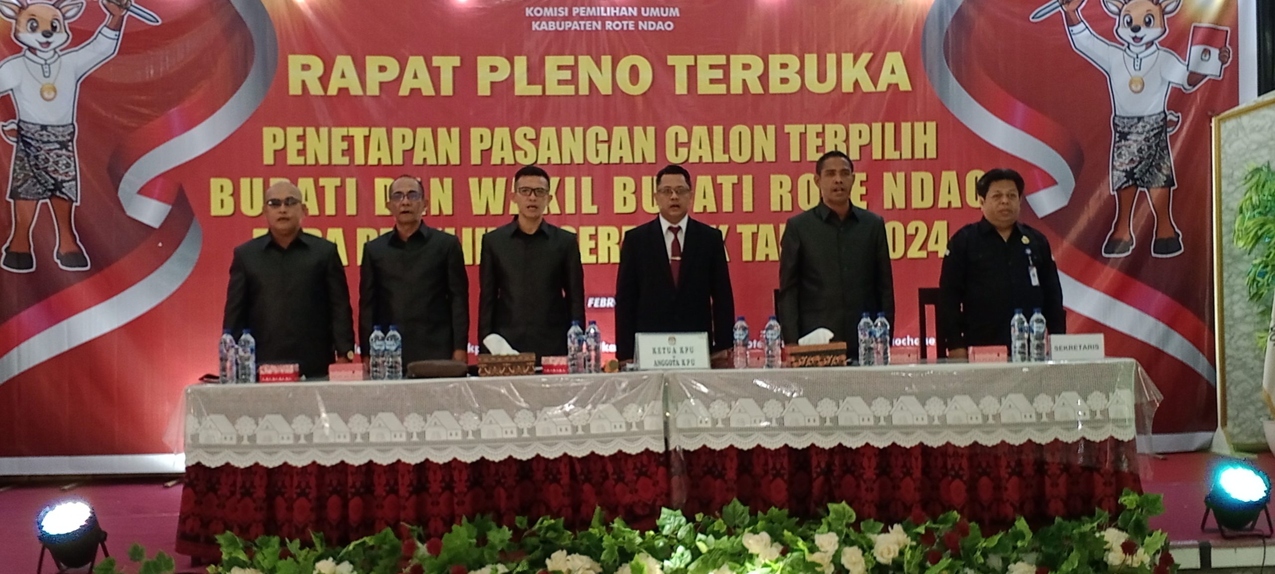 Keputusan penetapan pasangan calon terpilih ini tertuang dalam Keputusan KPU Kabupaten Rote Ndao Nomor 3 Tahun 2025 dan berlaku efektif sejak ditetapkan pada Rabu (5/2/2025) pukul 16.57 WITA (Nasa)