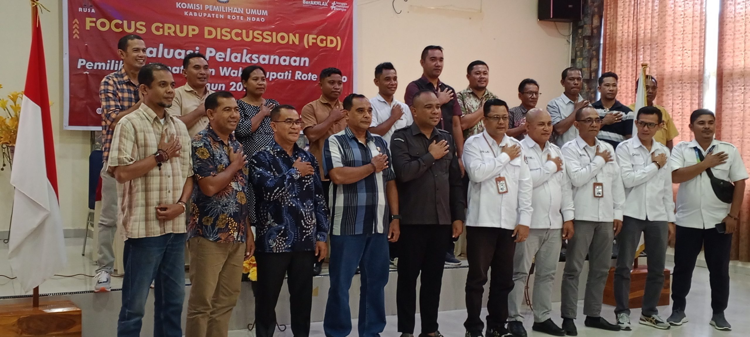 Komisi Pemilihan Umum Kabupaten Rote Ndao Gelar Focus Grup Discussion (FGD) evaluasi Pelaksanaan Pemilihan Bupati/Wakil Bupati Rote Ndao Tahun 2024 di aula Hotel Ricky, Senin (24/02/2025)