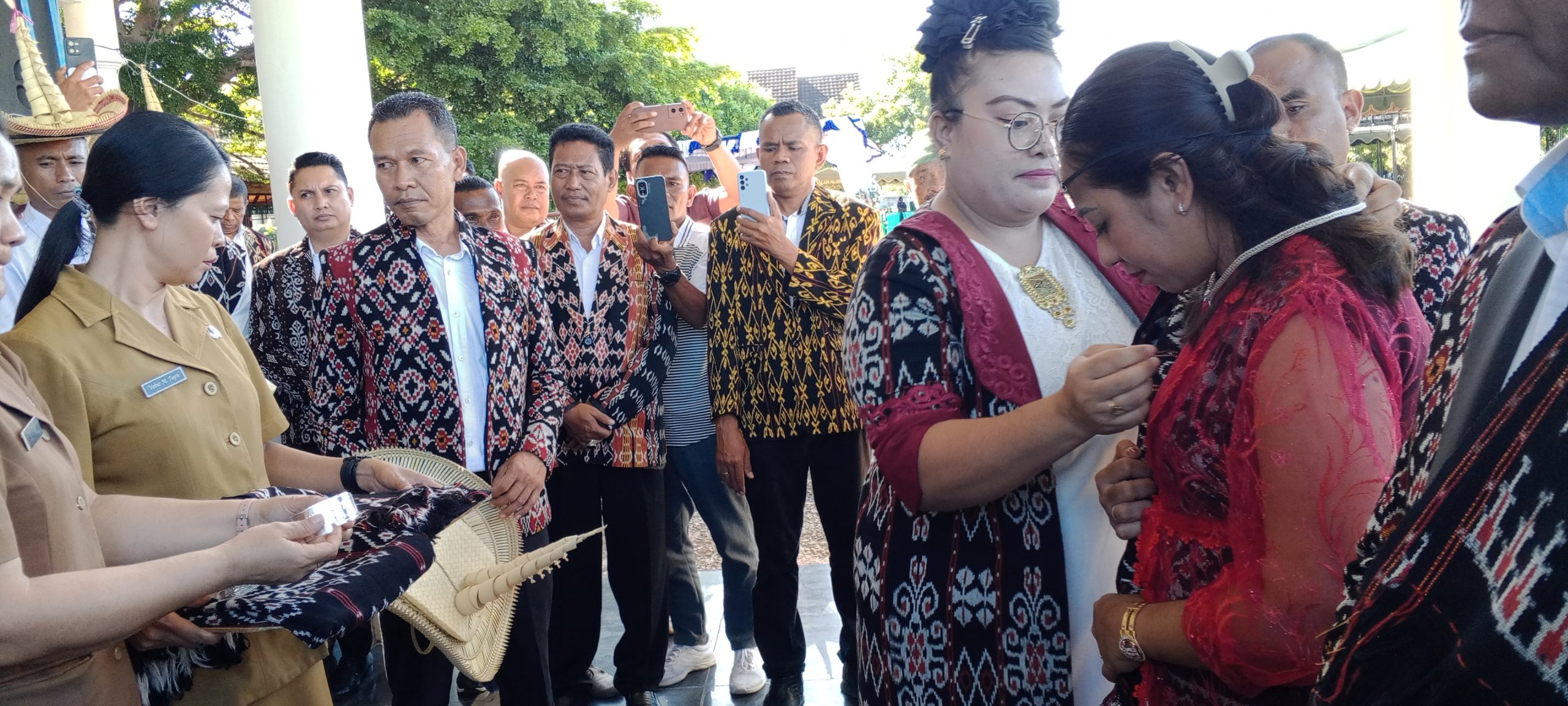 Bupati/Wakil Rote Ndao Paulus Henuk, S.H dan Apremoi Dudelusy Dethan diterima secara adat di Rumah Jabatan Bupati Rote Ndao Senin, (03/03/2025) sekitar Pukul 15.37 wita