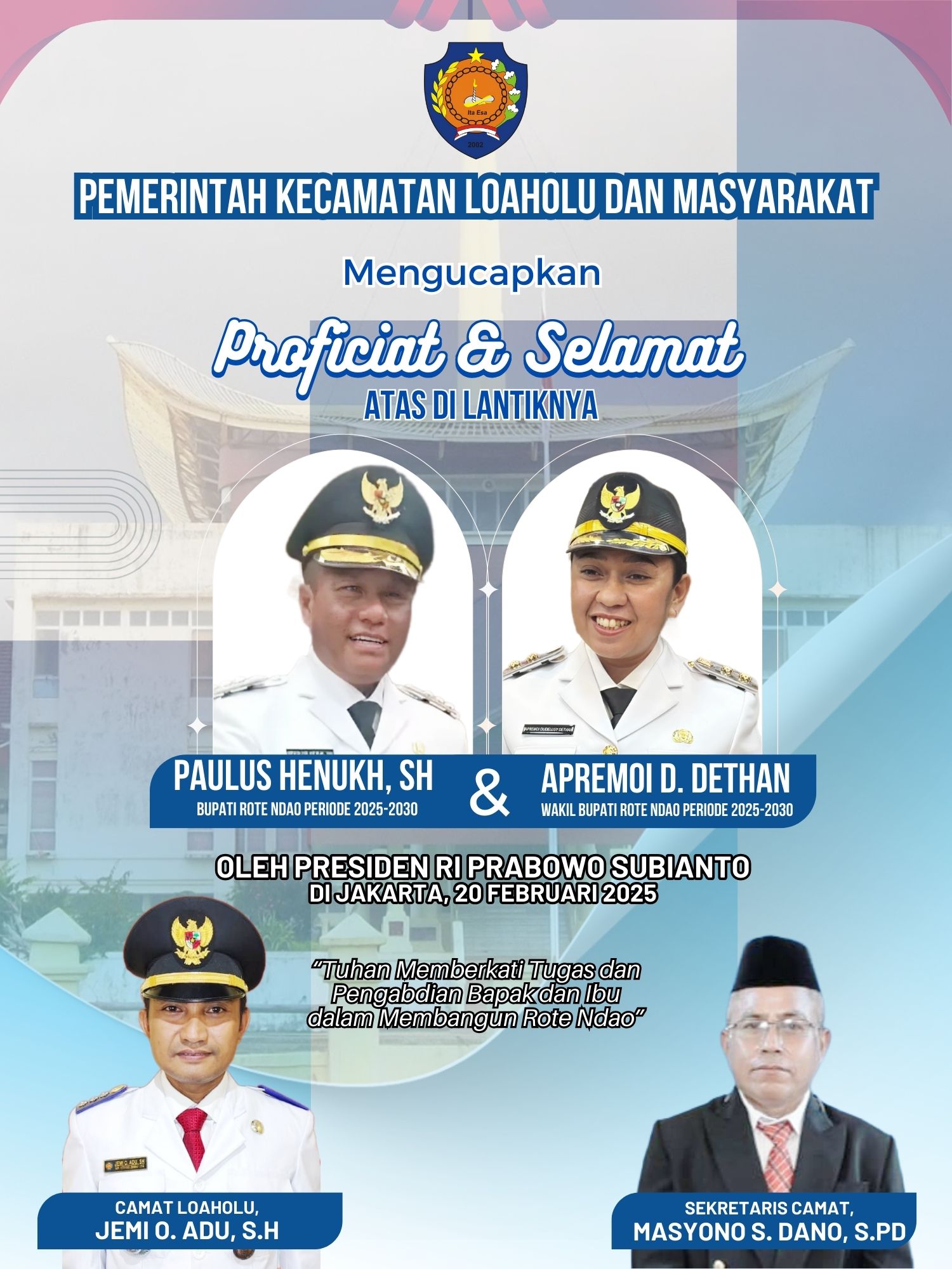 “Berharap kerja sama yang baik dengan pimpinan dan anggota DPRD nanti, kita sering ketemu untuk mengawasi Anggaran Desa untuk pembangunan yang kita salurkan ke desa setiap tahun,” Tandas Paul Henuk (Nasa)