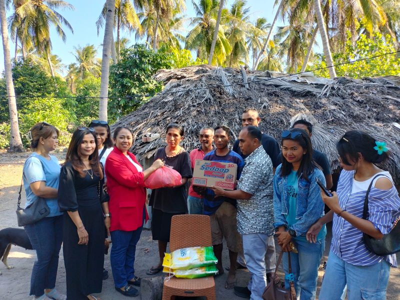 Ketua IMI Rote Ndao, Apremoi Dudelusy Dethan, didampingi anggota DPRD Provinsi NTT, Simson Polin, dan beberapa anggota club Milenial Motor Matic (M3) Stecu memberikan bantuan kepada keluarga Yulius Foeh, di Desa Bo’a Kecamatan Rote Barat