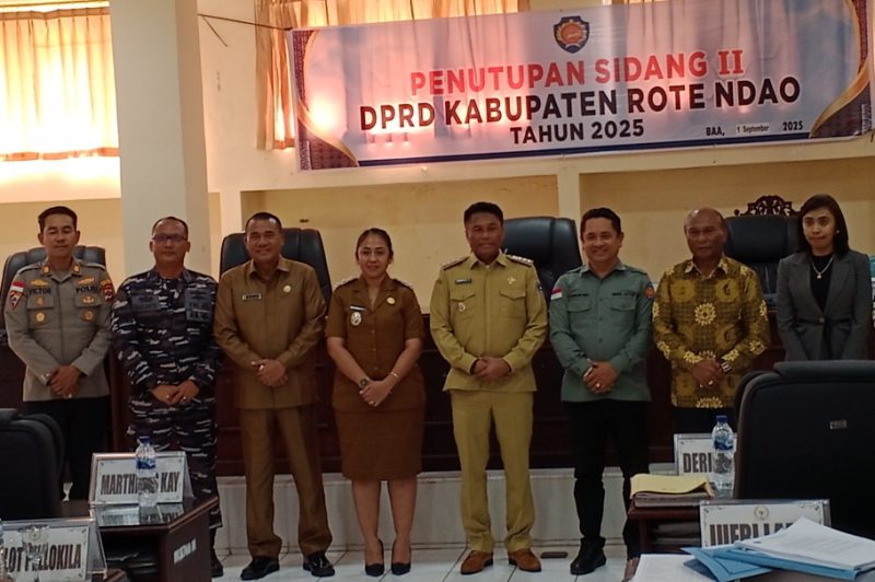 Kegiatan penutupan Sidang II dipimpin Wakil Ketua DPRD Rote Ndao Denison Moy, ST didampingi Wakil Ketua DPRD Drs. Lazarus Yonas Pah Dihadiri Wakil Bupati Rote Ndao Apremoi D. Dethan, Sekda Kab. Rote Ndao Drs. Jonas M. Selly, MM, Kabag Ops Polres Rote Ndao AKP Victor Hari Seputra,S.Pi., M.Si, Palaksa Lanal Pulau Rote, Kapten Laut (P) Sugianto, Kepala BNNK Rote Ndao Lodovikus Demung Moa, S.Kep., Msc, Para Kepala OPD Lingkup Pemerintah Rote Ndao, Anggota DPRD Rote Ndao, Camat Kabupaten Rote Ndao, (tim/nasa)