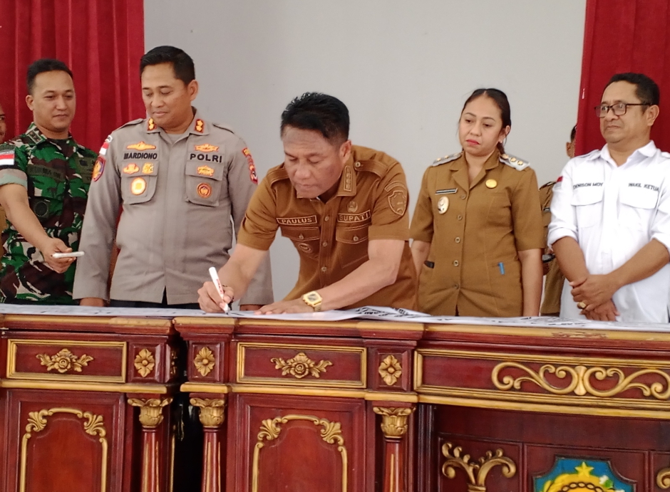 Penandatanganan Komitmen Bersama oleh Bupati Rote Ndao Paulus Henuk, Wakil Bupati Apremoi D. Dethan dan Forkorda.