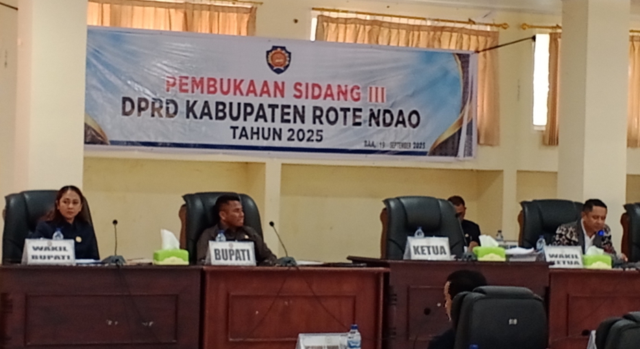 Demikian sambutan Bupati Paulus Henuk, S.H pada pembukaan sidang III DPRD Rote Ndao tahun Anggaran 2025, Di Kantor DPRD setempat, Jumat (19/9/2025)