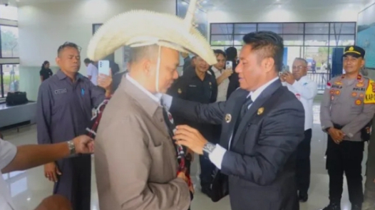 Menyambutnya di pintu kedatangan, Bupati Rote Ndao, Paulus Henuk, SH, didampingi Wakil Bupati Apremoi Dudelusy Dethan, Sekda Drs. Jonas M. Selly, MM, serta jajaran Forkopimda dan pimpinan perangkat daerah. Dalam prosesi penuh makna, Bupati Paulus memakaikan topi Ti’i Langga simbol kebijaksanaan dan kehormatan serta selimut khas Rote, tanda penerimaan yang hangat dan bersahaja dari masyarakat negeri seribu lontar itu.