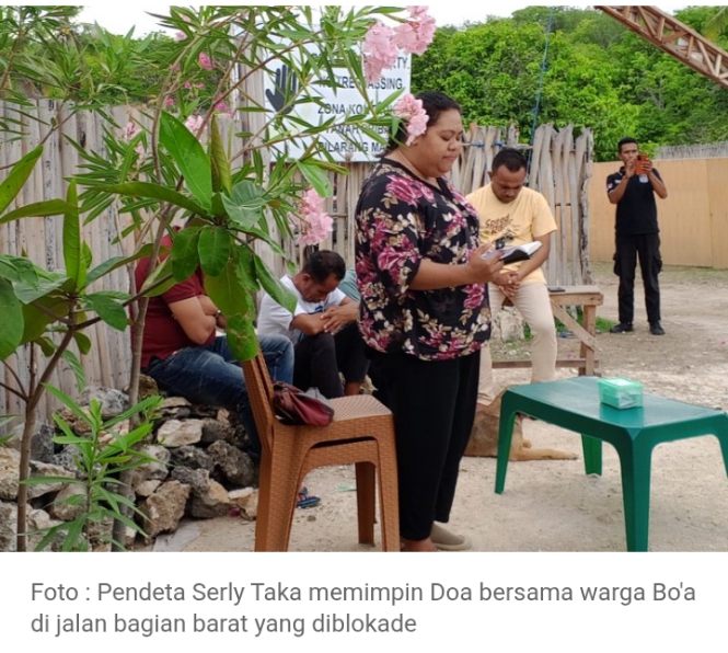 Rencana pembukaan blokade diawali dengan doa bersama yang dipimpin oleh Ketua Majelis Jemaat GMIT Solavide Bo’a, Pendeta Serly Taka, S.Th. Sebelum doa, setiap warga yang hadir memberikan nasar sebagai bentuk pengampunan dan niat bersama untuk menjaga kedamaian di tanah mereka.