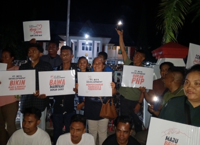Pantauan wartawan, Puluhan warga Desa Bo’a menyatakan dukungan terbuka kepada PT Bo’a Development dalam sidang lanjutan perkara dugaan penyebaran hoaks dengan terdakwa Erasmus Frans Mandato